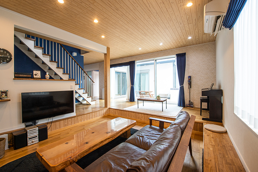 施主様が拘った段下がりのリビングが特徴です。